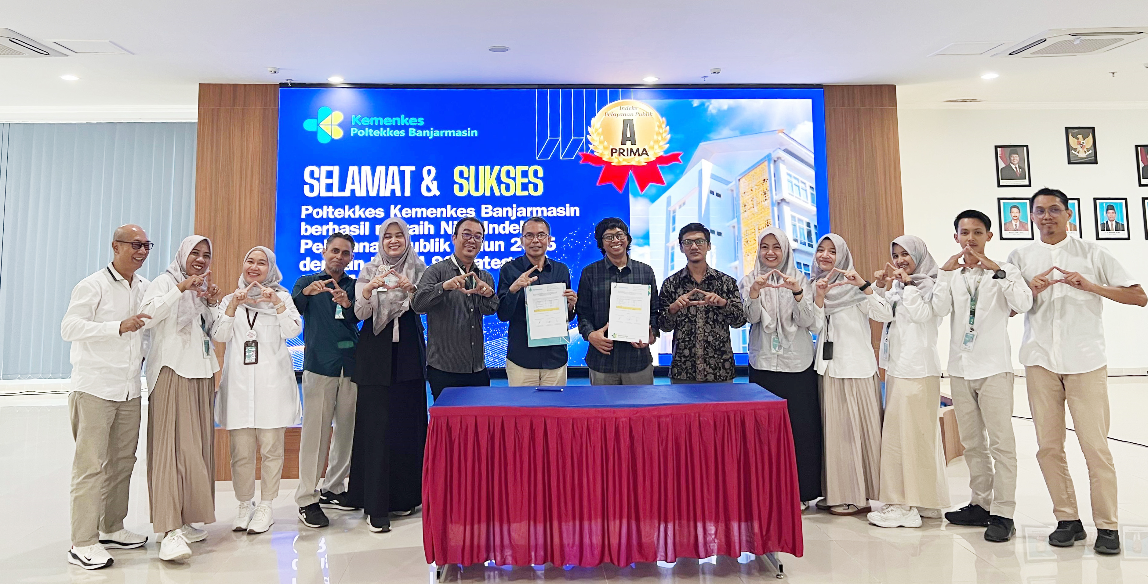 Dengan capaian skor 4,90 dari skala 5,00, Poltekkes Kemenkes Banjarmasin dinyatakan masuk Kategori A (PRIMA) — menunjukkan kualitas layanan yang sangat baik, profesional, responsif, dan inovatif dalam memberikan layanan kepada masyarakat.
