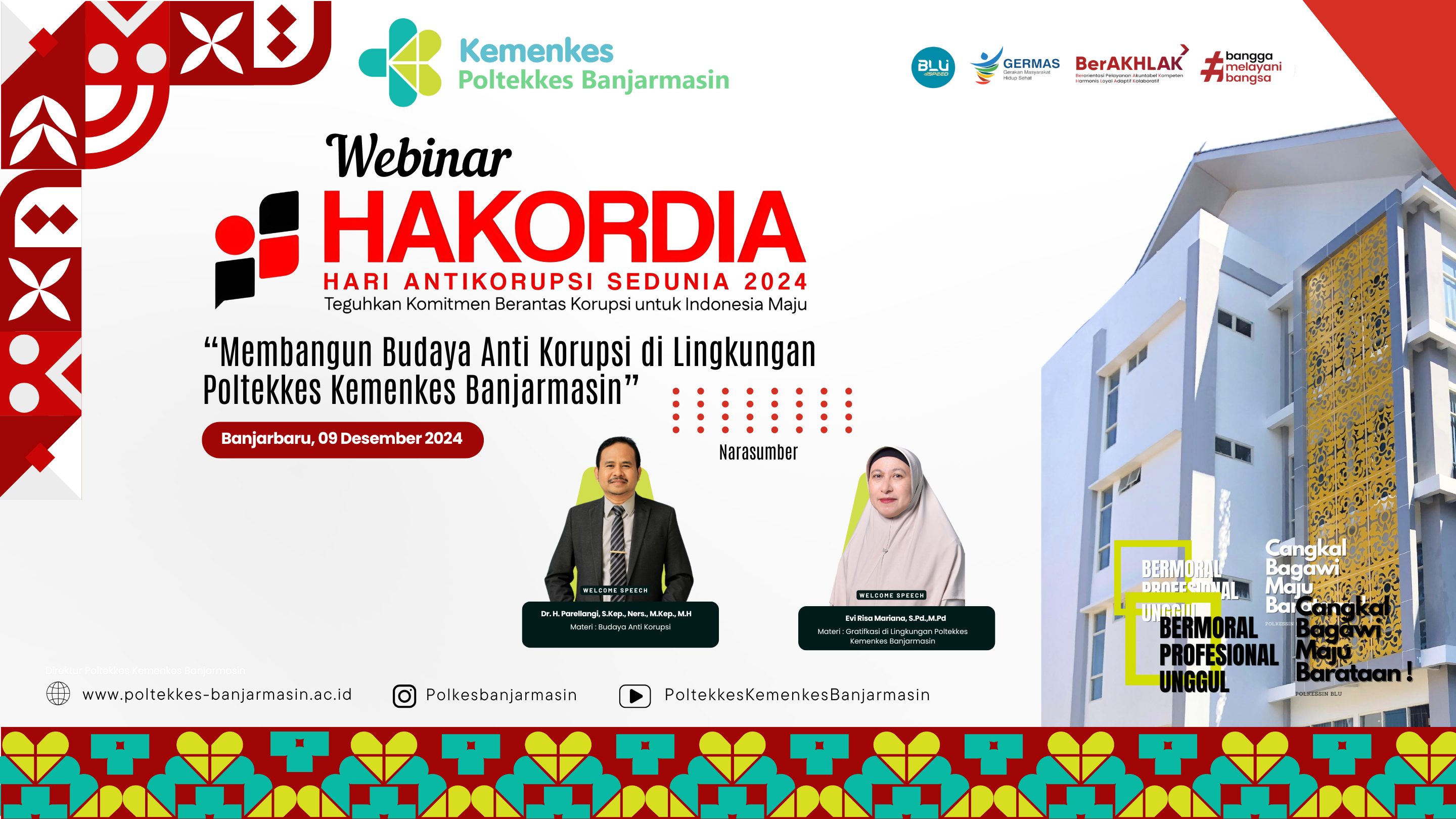 Banjarbaru, 9 Desember 2024 – Dalam rangka memperingati Hari Antikorupsi Sedunia (Hakordia) yang jatuh setiap tanggal 9 Desember, Poltekkes Kemenkes
