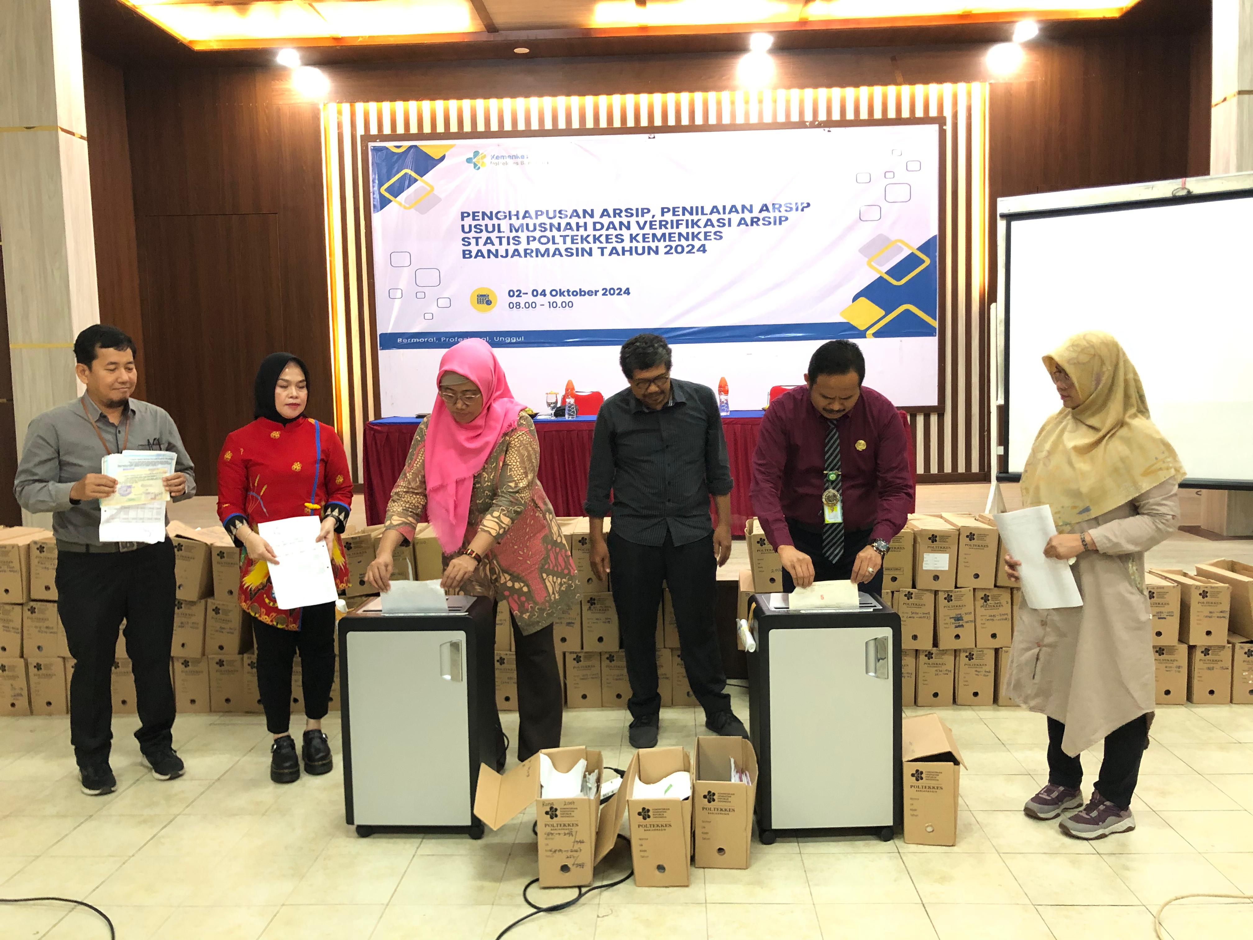 Kemenkes Poltekkes Banjarmasin Gelar Kegiatan Pemusnahan dan Penilaian dan verifikasi arsip usul musnah dan statis, untuk meningkatkan pengelolaan Kearsipan